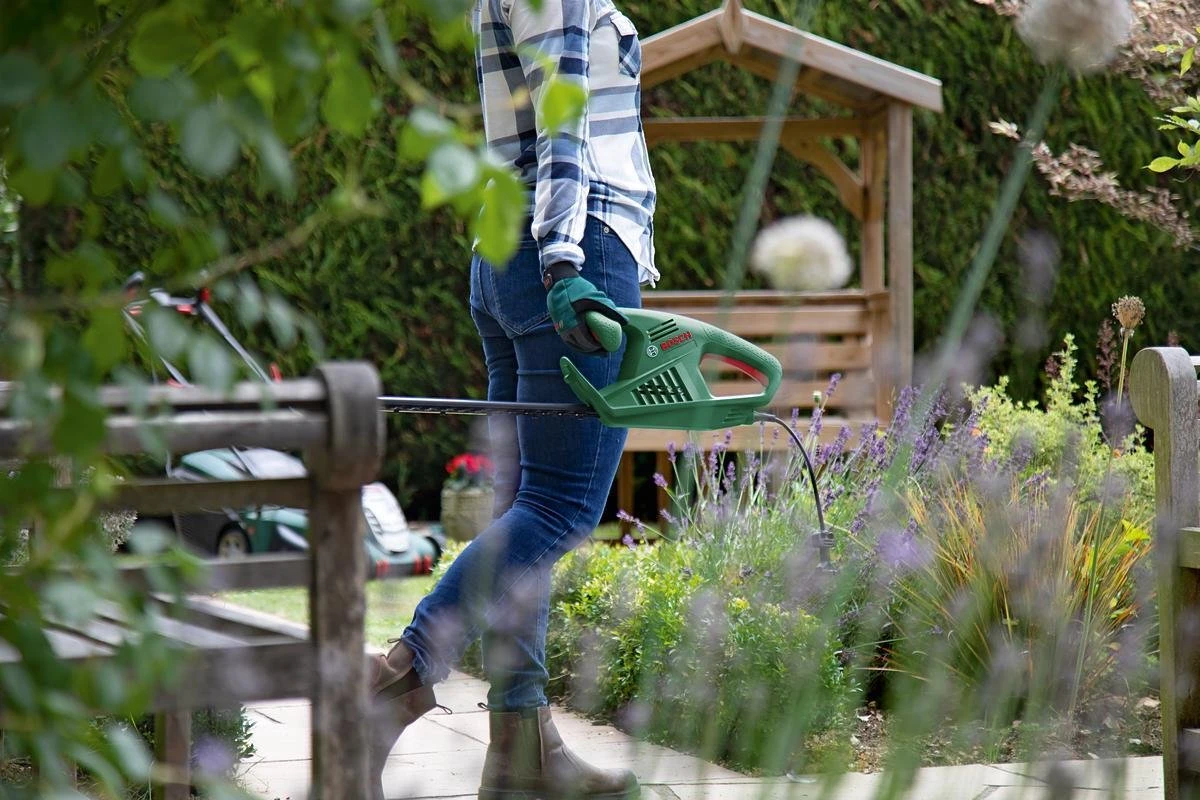 De Bosch EasyHedgecut 45 heggenschaar heeft een uitgebalanceerd gewicht met ergonomisch hanteren voor comfortabel werken in elke positie. Licht met een gewicht van 2,6 kg en een compact ontwerp voor gemakkelijk hanteren en controle. Meslengte van 45 cm en een tandafstand van 16 mm voor licht snoeiwerk. Mes-protector voor veilig snoeien langs muren en dichtbij de grond. Perfect voor het snoeien van kleine heggen.