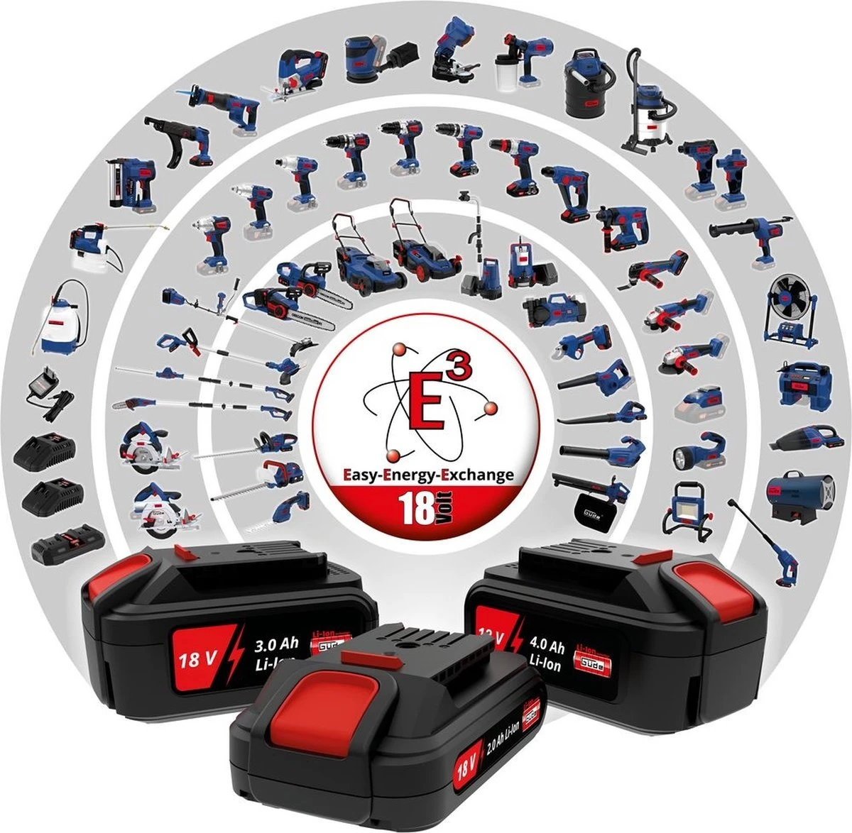 - Het Gude 18 Volt E3 Accusysteem is uitwisselbaar